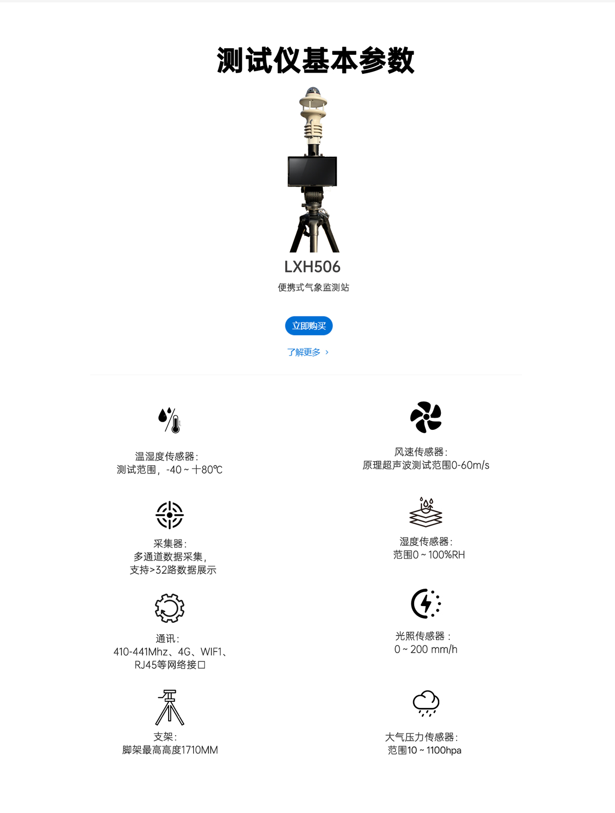 LXH506是一款便攜式氣象監(jiān)測(cè)站,可隨身攜帶各個(gè)場地進(jìn)行便捷的氣象采集工作,搭載超聲波微氣象LAILX-T5/LAILX-T6可實(shí)現(xiàn)風(fēng)速、風(fēng)向、大氣溫度、大氣濕度、大氣壓力、輻照度的測(cè)量。整套設(shè)備單人攜帶、操作方便,配置大容量鋰電池,適合短期戶外監(jiān)測(cè),廣泛用于應(yīng)急氣象監(jiān)測(cè)、車載氣象監(jiān)測(cè)、氣象檢測(cè)等應(yīng)用場所。