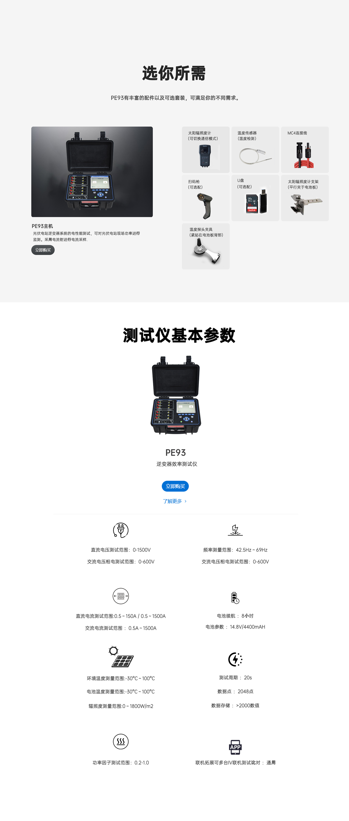 LX-PE93逆變器效率測試儀采用電流鉗進(jìn)行電流采樣,能夠在電站正常工作狀態(tài)下對(duì)電站中不同節(jié)點(diǎn)的功率進(jìn)行實(shí)時(shí)記錄分析。整機(jī)配備輻照系統(tǒng),可在電站各節(jié)點(diǎn)測量出準(zhǔn)確的實(shí)時(shí)發(fā)電效率并在系統(tǒng)自動(dòng)生成PR值。