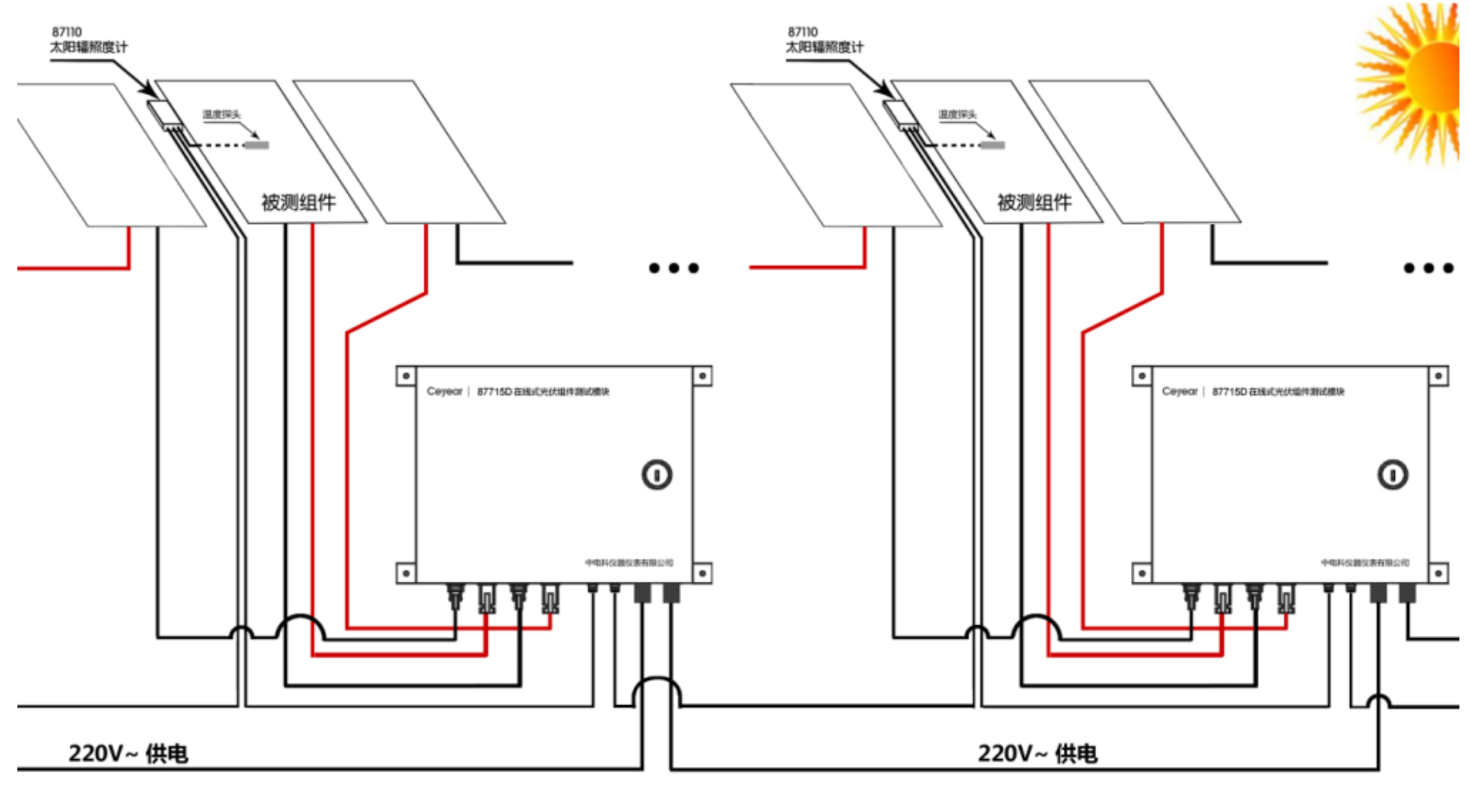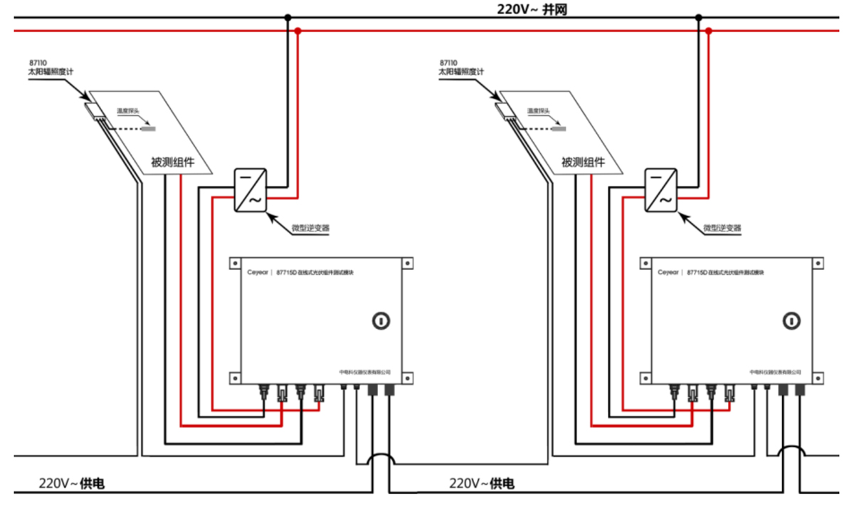 3. 支持87110B太陽輻照度計一同組網,實現對被測組件輻照度、溫度的監測。